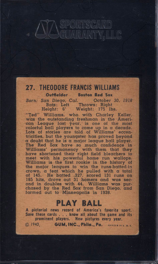 1940 Playball #27 Ted Williams Red Sox SGC 5