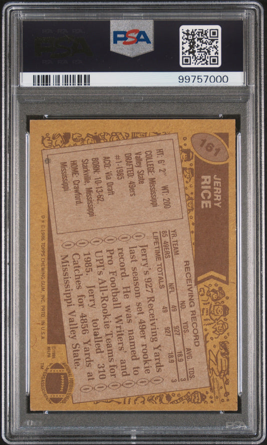 1986 Topps #161 Jerry Rice Rookie HOF Signed 49ers PSA Authentic Auto 9