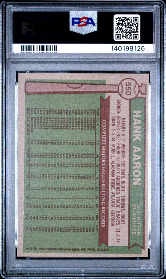1976 Topps #550 Hank Aaron Brewers PSA 8